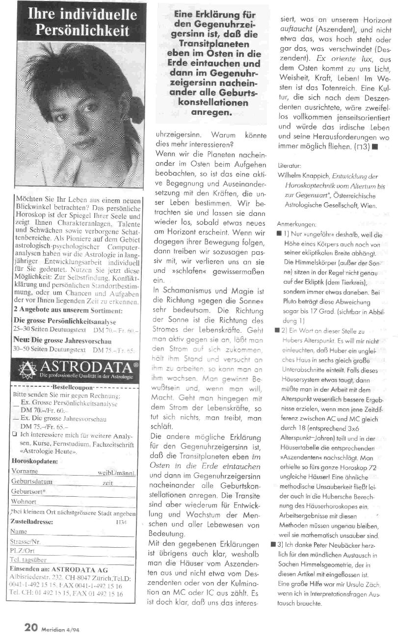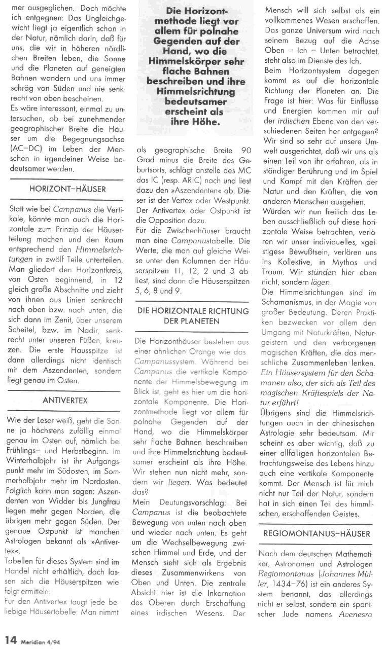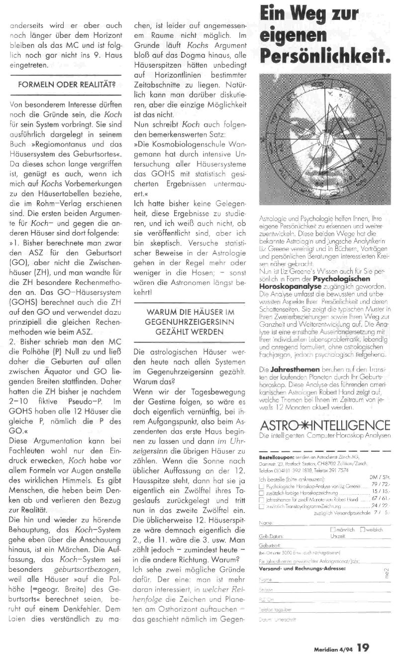 Domy - diskuze v časopise Meridian 4/94 (německy)